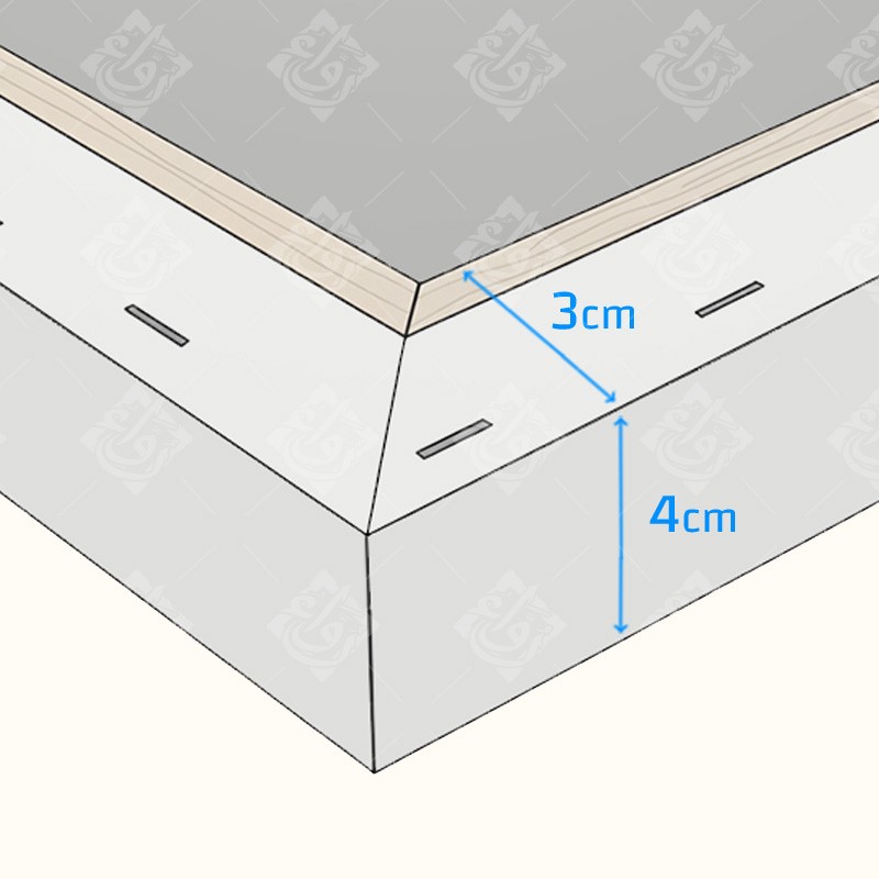تأتي لوحات رُواء مطبوعة على قماش فاخر ومشدودة على إطار من خشب طبيعي صلب بسُمك 4 سم، ما يمنحها حضورًا قويًا ولمسة فخامة واضحة.